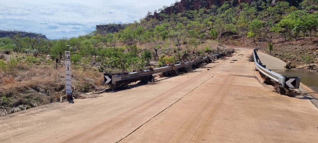 Above: An impassable creek crossing just after the cattle gate and before Yarralin.