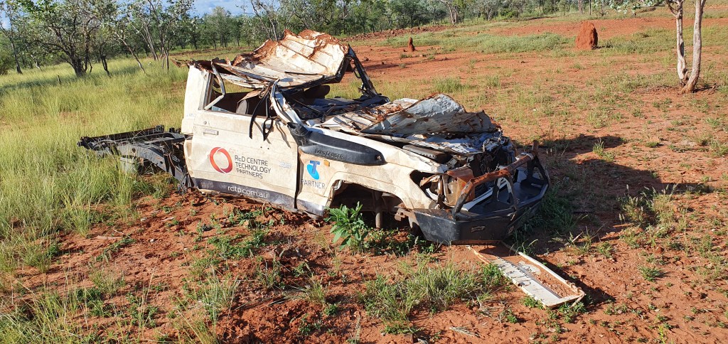 - If you get stuck… – In the event you do get stuck and can’t get out, we strongly recommend you wait with your vehicle. Just 5 minutes of driving at 60 km/h is 5 km. The average person only walks about 5 km per hour. That means every 5 minutes you drive is an hour of walking. You’re often too far from anywhere to walk in the heat and humidity of the Northern Territory, as you will not survive without carrying large amounts of water with you (recommended 1 litre per hour, and 1 litre of water weighs about 1 kg). Find some shade and wait with your vehicle, as the road is well traversed and someone will be along before too long (you may just have to wait a few hours). You did let someone know you were coming, right? We have had people get bogged who have had to wait with their vehicle overnight. It’s always a good idea to bring at least 2 to 5 Litres of water with you just in case.